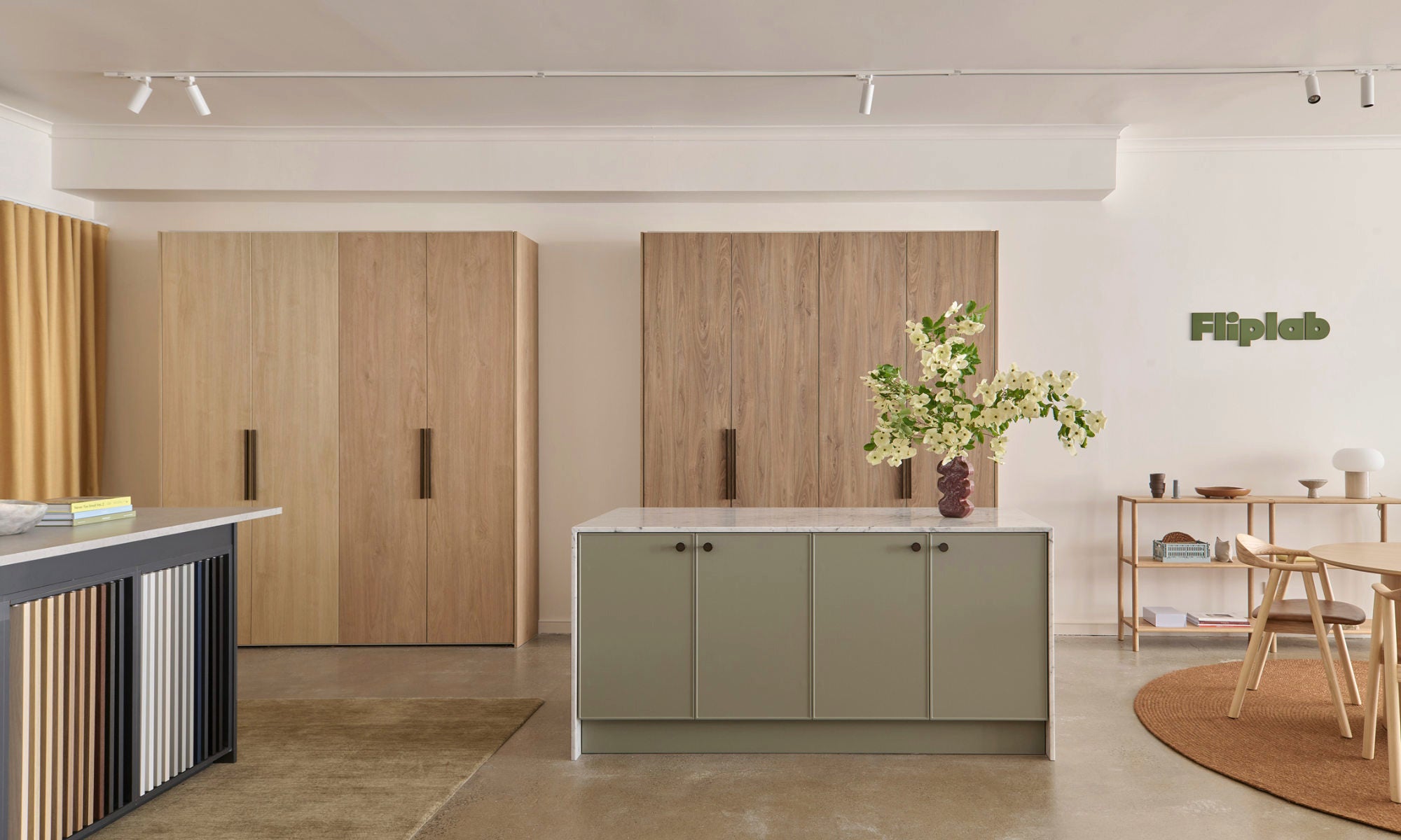 Fliplab designer doors, drawers and panels are designed to fit affordable flatpack base cabinets from Bunnings Kaboodle and IKEA. With hundreds of profile, colour and finish options to choose from, Fliplab helps you elevate a solid foundation into cabinetry that is beautiful, high quality and uniquely yours.